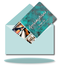 Ein Design ist bereits als Gutscheinkarte verfügbar. 6 weitere Designs sind als PDF per E-Mailversand